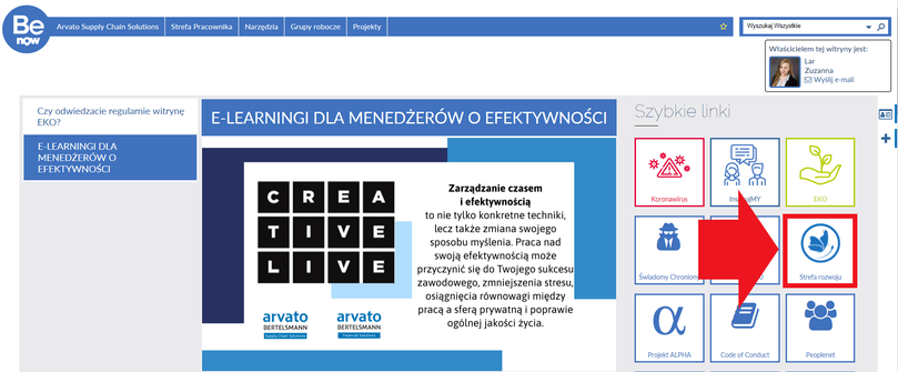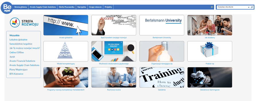 Strefa Rozwoju to witryna w BEnow, w której znajdują się wszystkie informacje o możliwościach rozwoju w Arvato Polska,